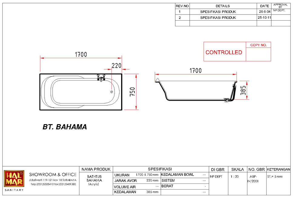 BATHTUB BAHAMA WITHOUT HANDLE